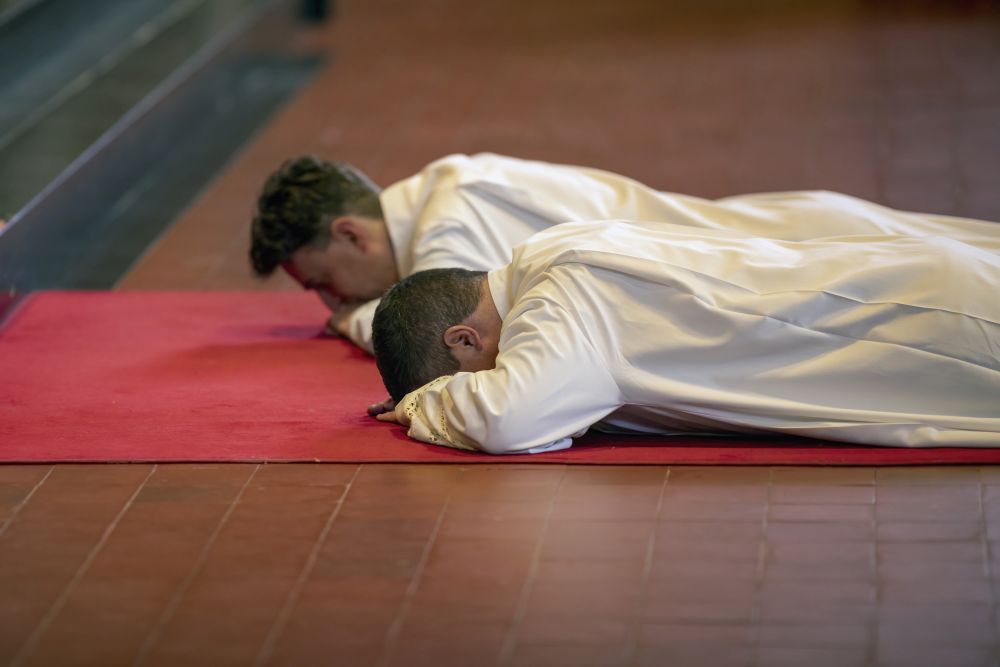 Na de homilie spreken Arno en Mick de beloften uit die horen bij de diakenwijding, ze leggen geknield voor de bisschop hun handen in zijn handen, de litanie van alle heiligen wordt gezongen gebeden en daarna volgt de wijding door handoplegging en gebed. De wijdelingen worden bekleed met de stool en de dalmatiek en ontvangen het evangelieboek uit handen van de bisschop: “Ontvang het evangelie van Christus, waarvan u de verkondiger bent geworden; en zie erop toe dat u gelooft wat u zelf gelezen hebt, dat u onderricht wat u in geloof hebt aanvaard, en dat u zelf handelt naar wat u hebt onderricht.” Daarna wordt de wijdingsplechtigheid vervolgd met de viering van de eucharistie.
