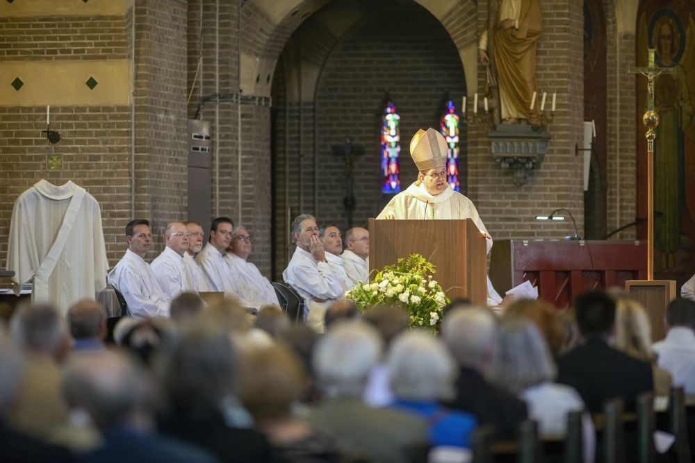In de evangelielezing van deze dag (Johannes 17, 1-11a) wordt verteld hoe Jezus bidt tot zijn Vader. “Als je bidt, noem je vaak de dingen die voor jou belangrijk zijn”, zegt de bisschop. “We bidden in allerlei omstandigheden, die moeilijk zijn en die misschien dreigend op ons afkomen. We bidden voor de wereldvrede. We bidden om nieuwe roepingen. We bidden om de voortgang van het geloof ook in onze dagen. En al die intenties doen ertoe. Omdat ze verbonden zijn met de Heer. Wat Jezus vandaag in het evangelie bidt, geeft ons ook een inkijkje in waar Hij zijn focus op richt. Het gaat erom dat de liefde van God bekend wordt, want zozeer heeft God de wereld liefgehad dat Hij zijn Zoon gegeven heeft (cf. Johannes 3, 16), tot op het kruis. En voordat het zover is, bidt Jezus in evangelie van vandaag. Hij bidt dat zijn leerlingen de weg van het evangelie trouw mogen blijven.”