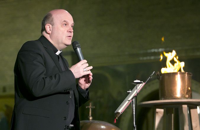 Als de vormelingen de kathedraal binnenstappen is het buiten stormachtig weer. “Je zou kunnen zeggen dat het in de kerk elke dag code rood is”, zegt bisschop Van den Hende bij de opening van de Vuurdoop. “Want de rode kleur van het vormsel en het vuur, is altijd aanwezig in ieder van ons. Het is de Heilige Geest die ons geeft wat we nodig hebben om te geloven, om elkaar te dienen en steeds weer op weg te gaan met de woorden van Jezus.”